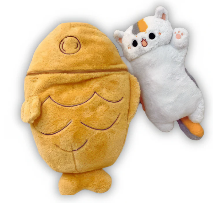 The Snuggie Kitty™ is a super-soft plush cat hidden inside a fish pillow. It’s perfect for cuddling, decorating your room, or gifting to someone special.